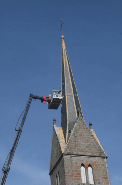 Offrant une solution d’élévation temporaire, les nacelles sont adaptées à de nombreuses interventions de maintenance, de réparation, d’entretien ou de nettoyage. Nous intervenons notamment dans le cadre du remplacement de gouttières, du remplacement d’ardoises de toit, de l’entretien de clochers et autres endroits difficiles d’accès.